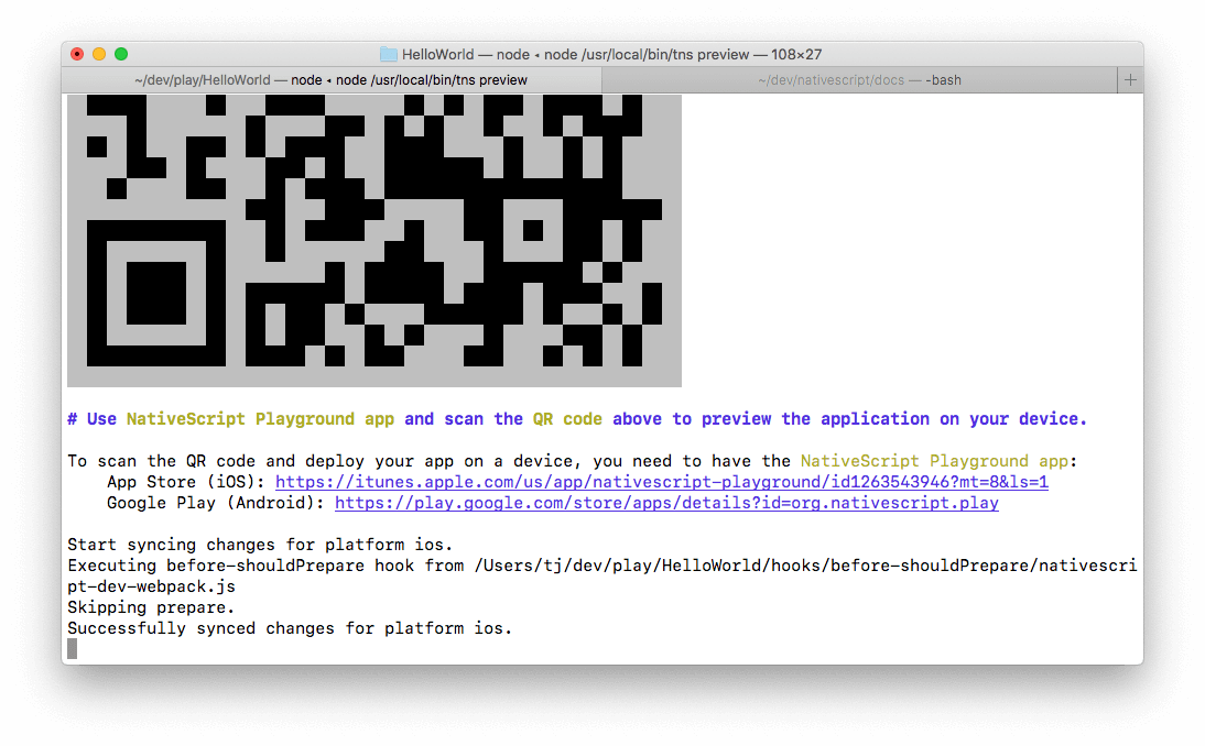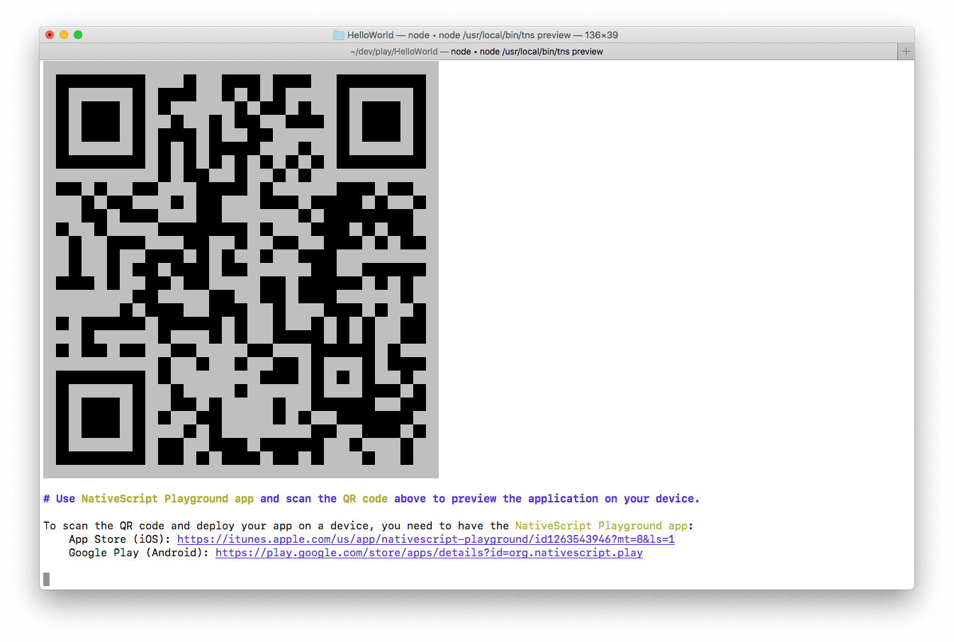 previewcommand. This option allows you to test NativeScript with a quick setup. See the quick setup section for details). -